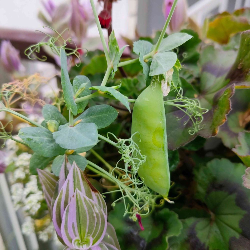 今朝水撒きしてたら、ゼラニウムの鉢からな、なんとさやいんげん🫛が、鳥のサプライズかしら…😄