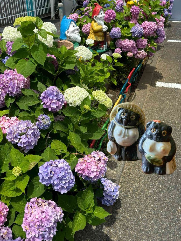 狸のご夫婦 仲良しで紫陽花見物ね💓