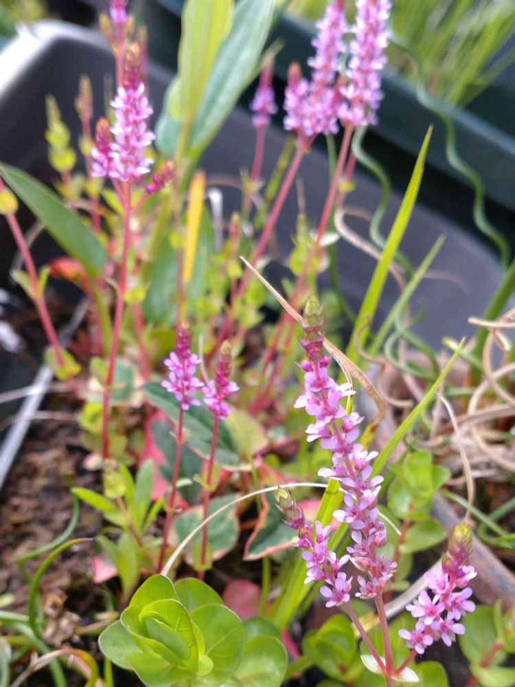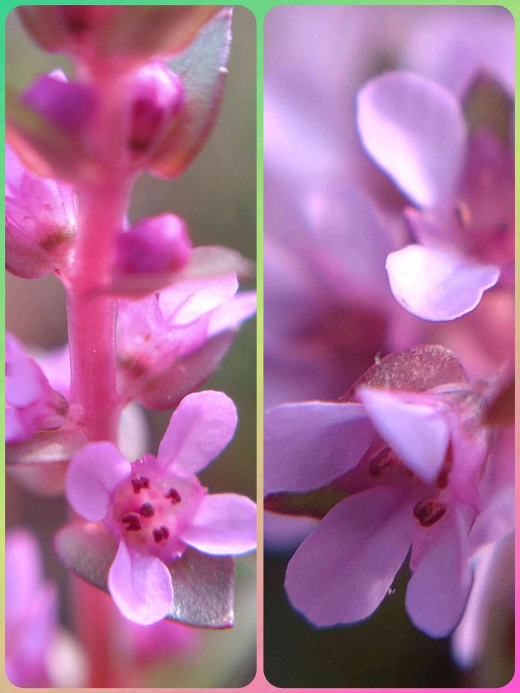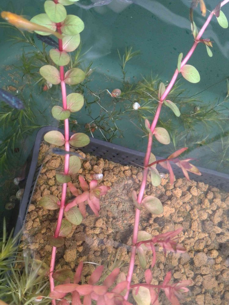 ④水中葉は赤く細長いけど、水上葉は丸く緑な…ロタラの花です🙂