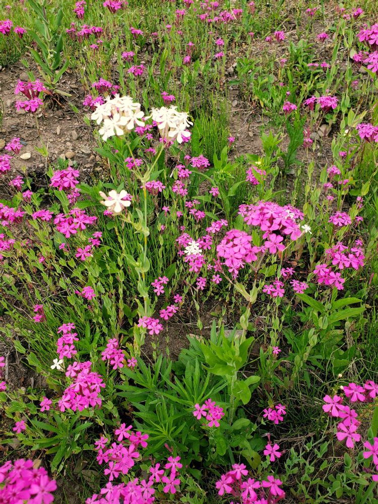 畑の色合いになるかと、ムシトリナデシコを残しておいたら、白花が現れました。