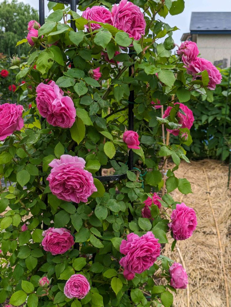去年思い切って新しい枝を出させるために試しに2本ばかり半分とこで剪定して、うまいこと新枝をたさせ、誘引は段差剪定&前半分にすることで花の大きさも数も⤴️⤴️✨