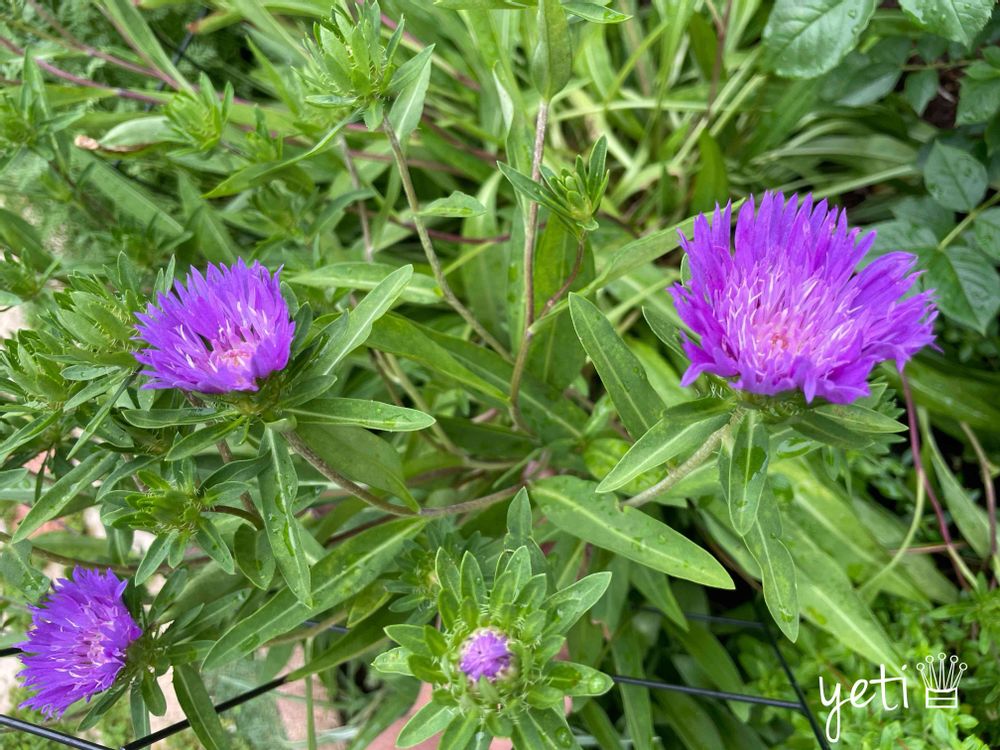 ①ストケシア 10年くらい植ったままで大きな場所を取る割に花が上がらなかった子がとうとうたくさん咲かせてくれましたよ😭今まで咲いても1〜2輪だったのにどうした?