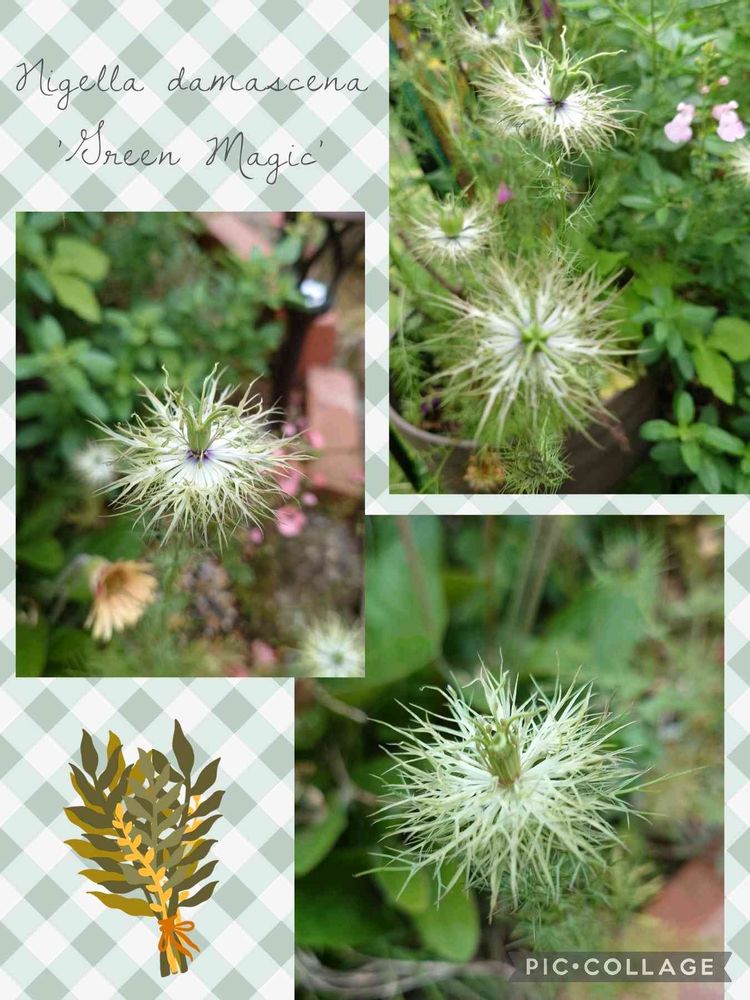 こぼれ種子で出たニゲラ『グリーンマジック』が満開になりました💚🤍