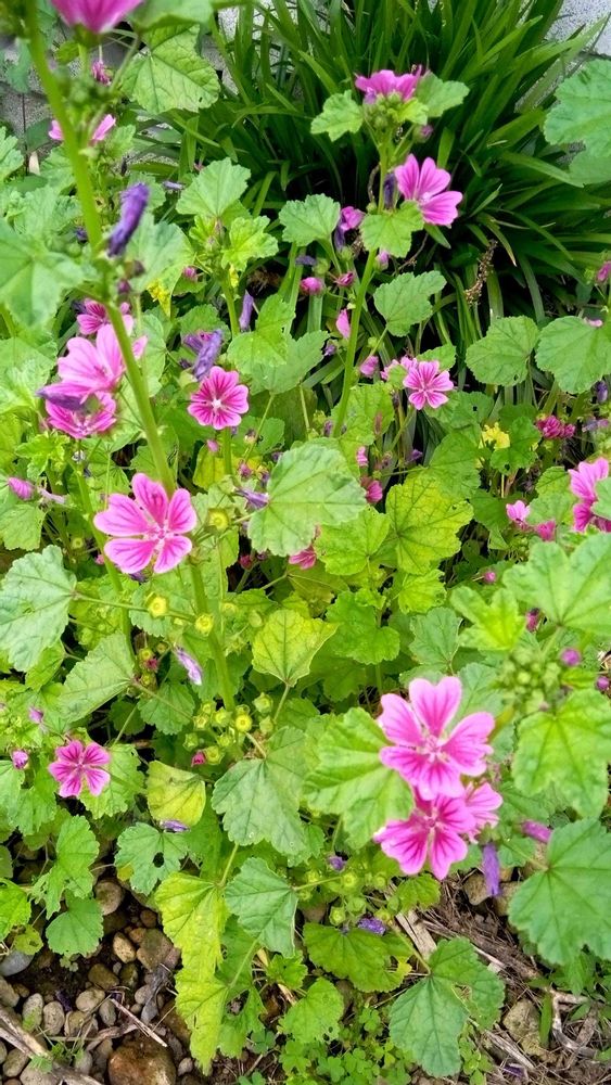 葉っぱに割れ目がなく丸い葉っぱでしたのでゼニアオイのようです💦
