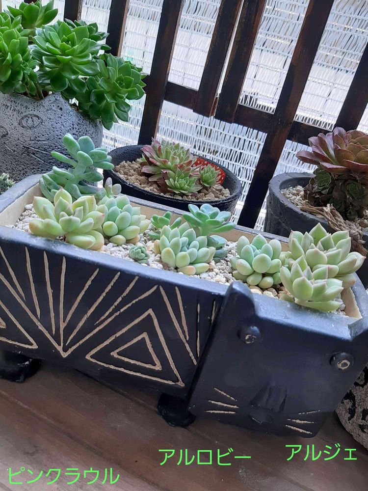 猫の背中にたくさんの多肉ちゃんだฅ^•ω•^ฅ