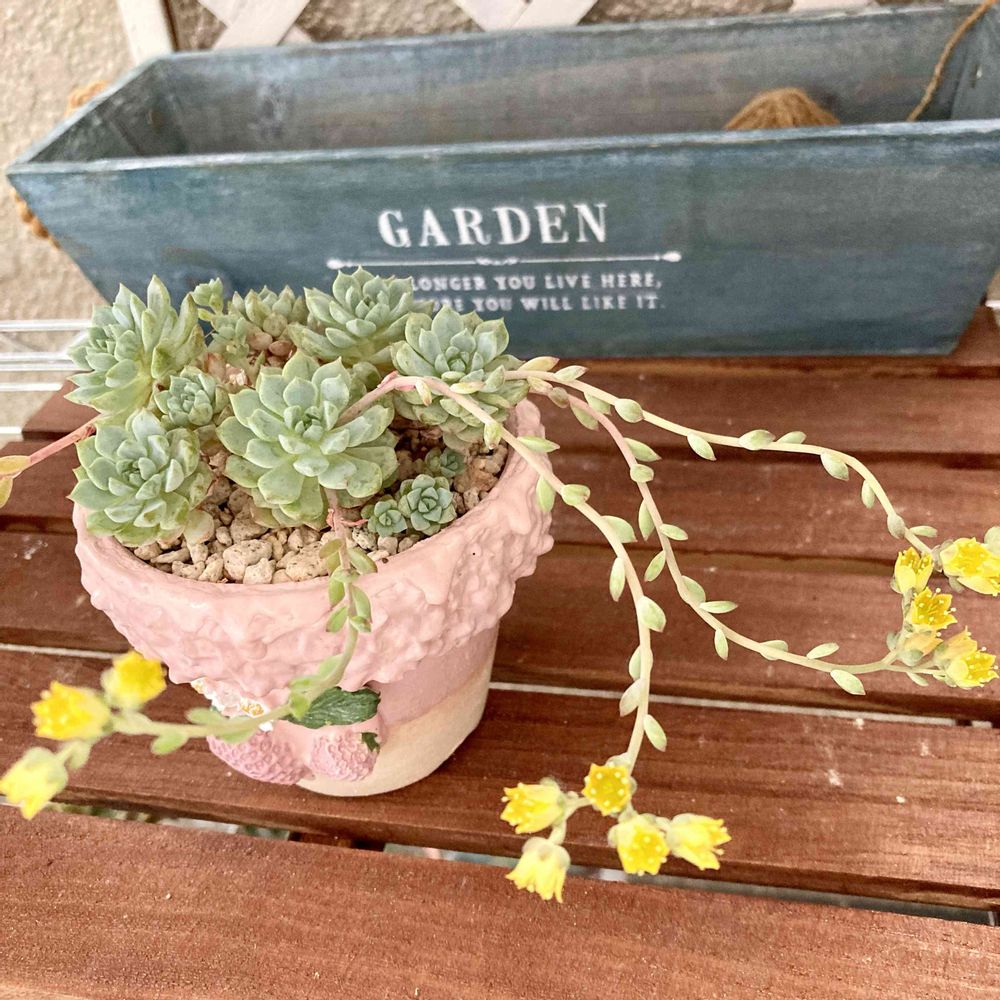 サニコさんのいちごクランチ鉢のピンクベリー🍓お花がたくさん😆🌼