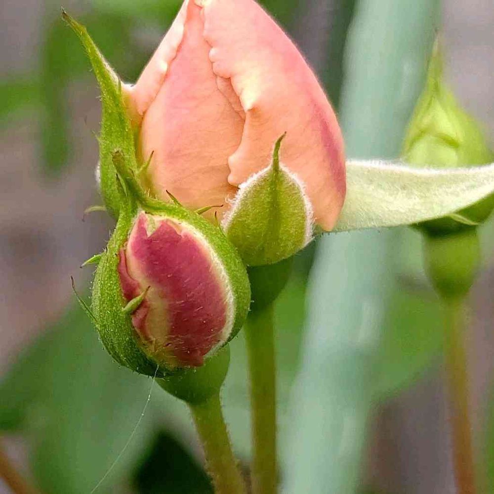 蕾は赤いのに開花が進むとアプリコットピンクから白へ