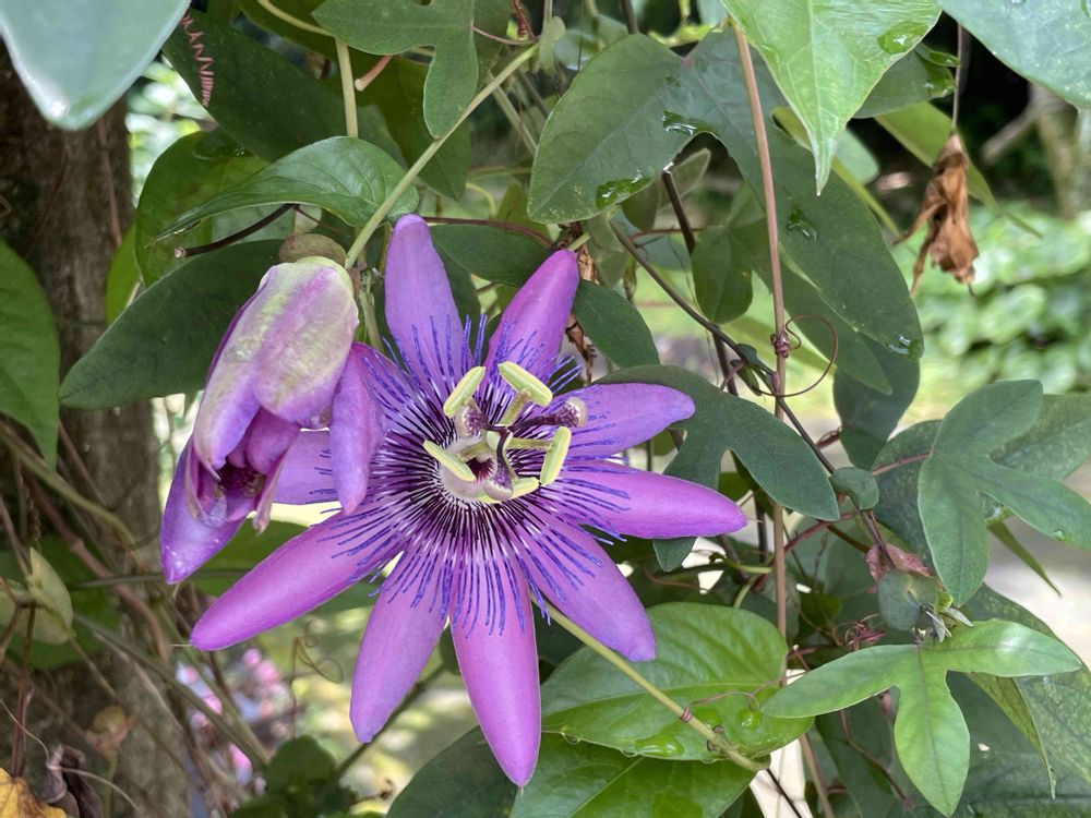 ムラサキ色のトケイソウ、はじめて見ました💜🍀