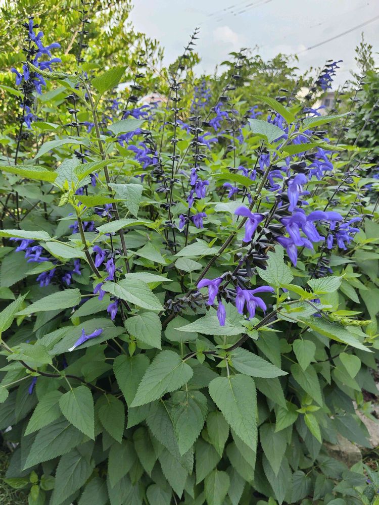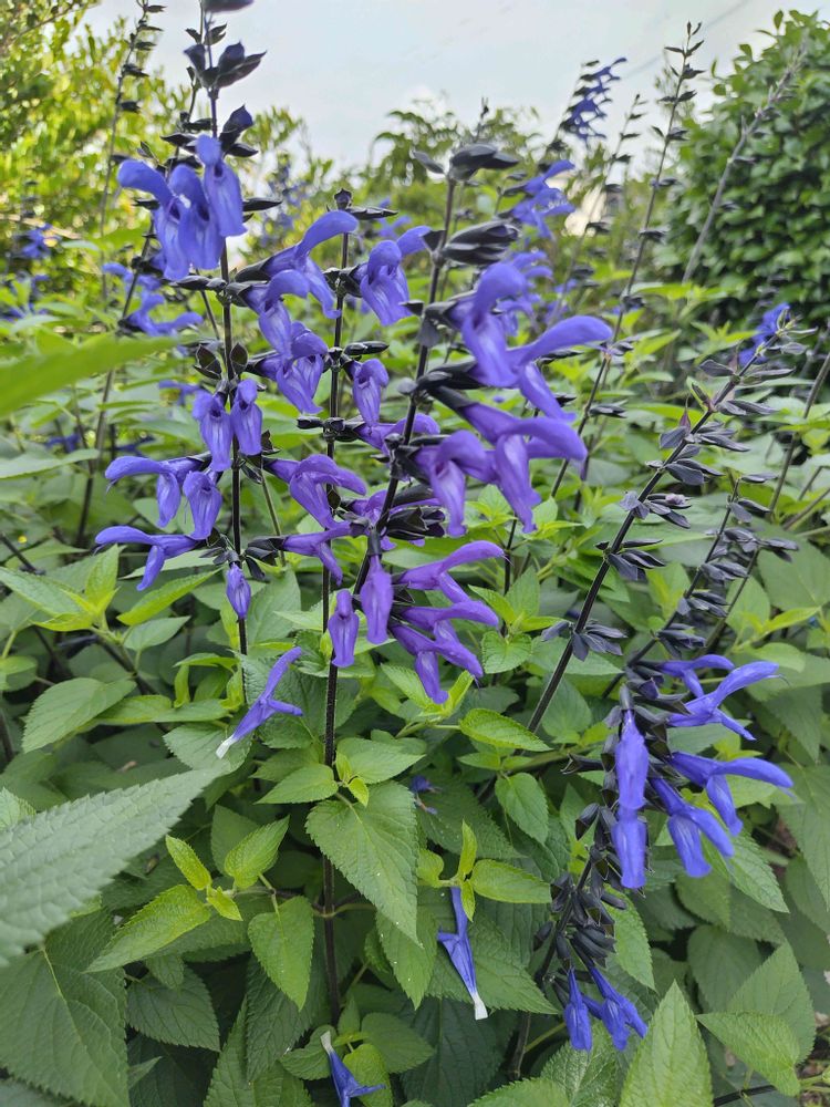 たくさんのブルーの花穂をつけています。とても強いお花で、3年前に98円で3苗買って地植えしたら根を張り続け、この花壇の半分を埋め尽くしています。冬は地面から姿を消しますが、春にあちこちから新芽を出して、今日までに3回切り戻しました。