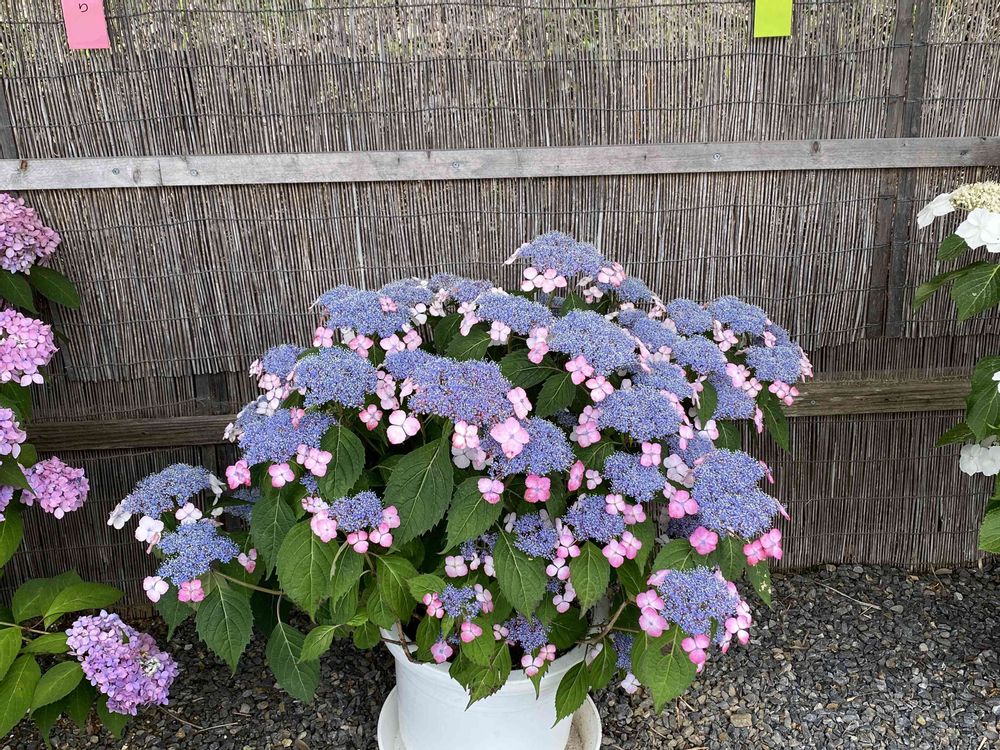 湖畔を歩いていくとあじさいの展示がありました 数十鉢はあります しかも大鉢です 気にいたのがあったら応援してね