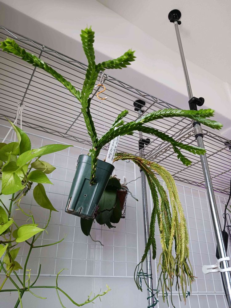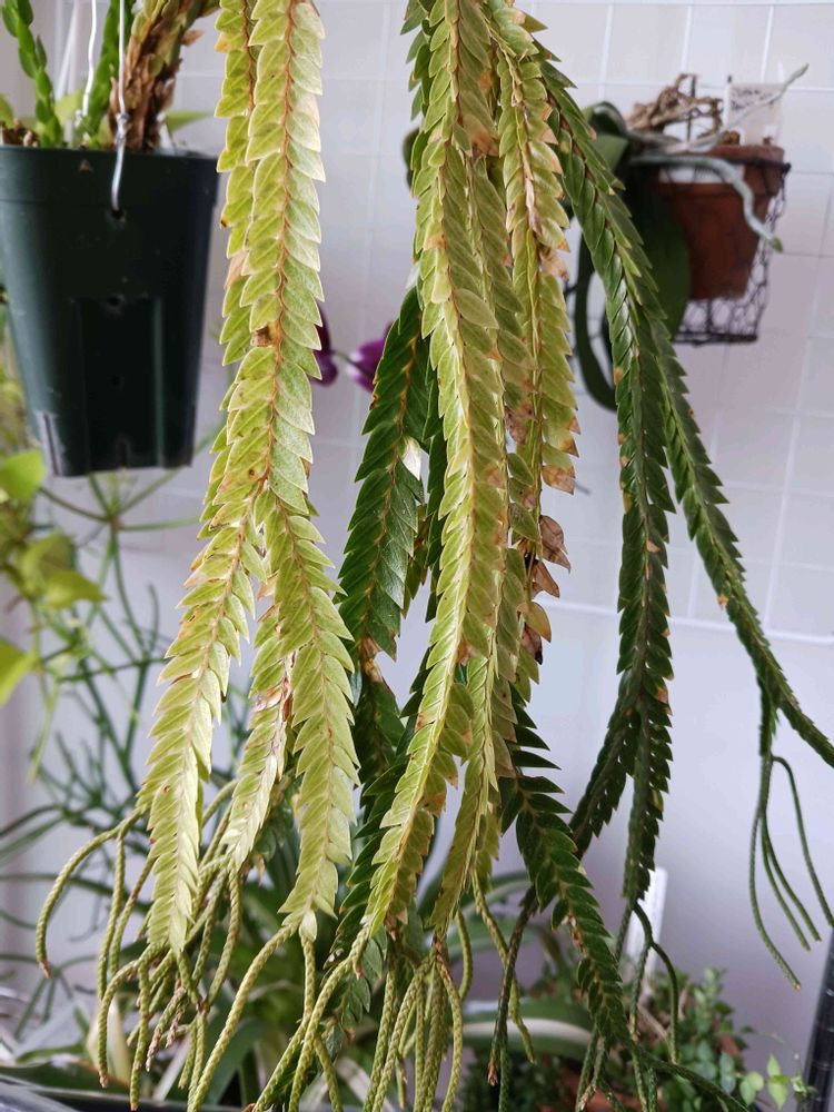 ②がっちり密な葉っぱは硬いですが黄色くなってきたのでそろそろ終わりかなぁー?カットして胞子嚢のところを水苔に置いて根っこ出させよう😆