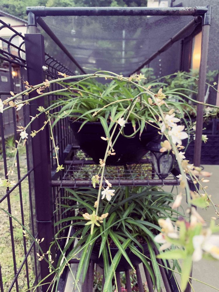 オリヅルランの原種、何故か今年は花ばっかり💦
