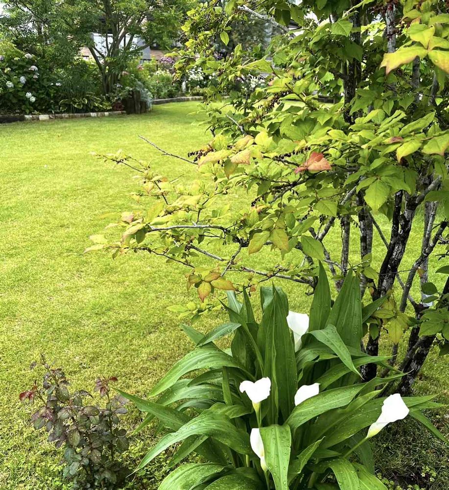 ナツハゼは、もう紅葉した様な葉っぱになってきて芝生の緑とのコンラストが綺麗です🌿🍁
