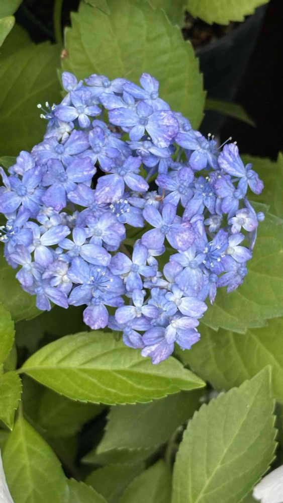 4枚目は、上の花がブルー強めの咲いてるのが1鉢です。一枚目のズームした写真の有松が一つだけ咲いてます。