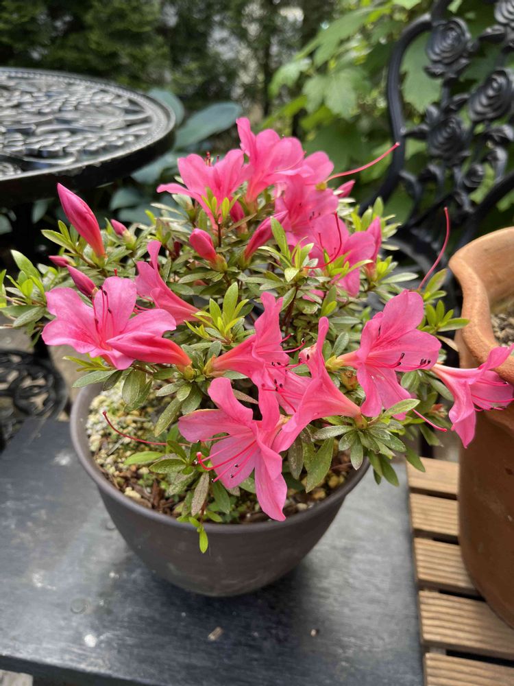 さつきの盆栽、かわいい🩷…こうして植木鉢でコンパクトに育てるというのも風情があって良いですね〜☺️