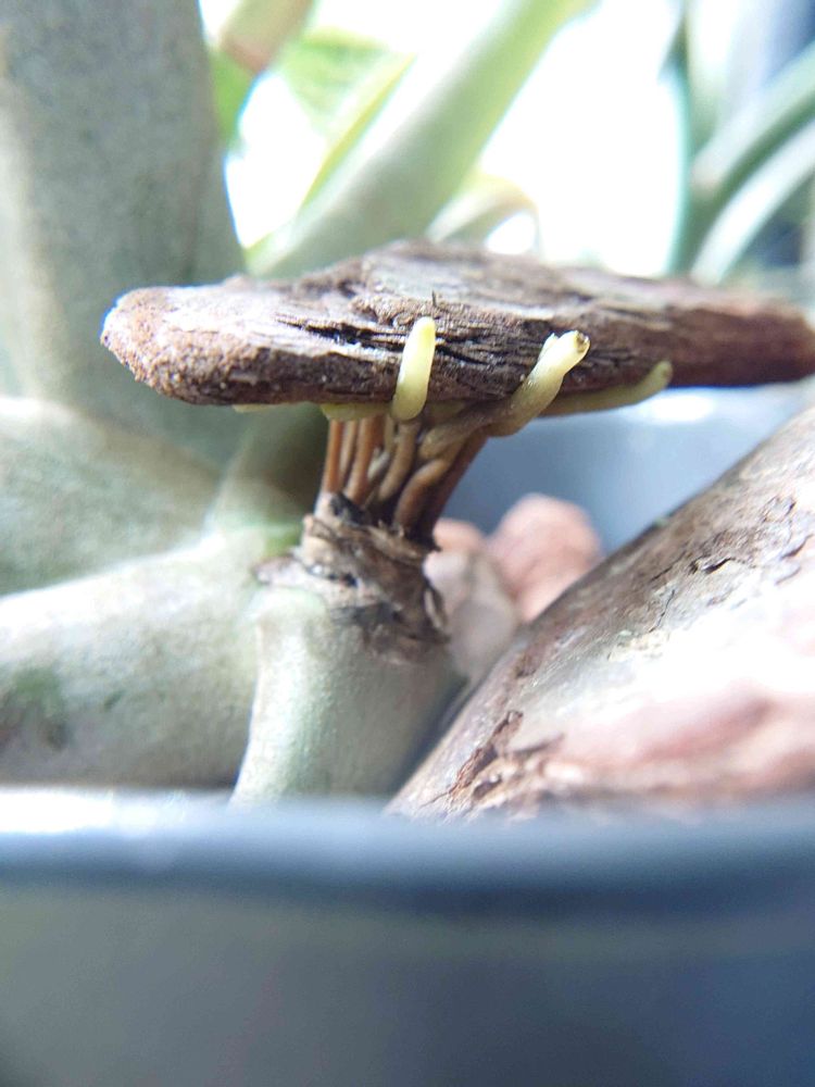 普段はバークチップの上に石を乗っけて重りにしてるのですが、外してみた所根っこがバークチップを鷲掴みしてました😳🦅