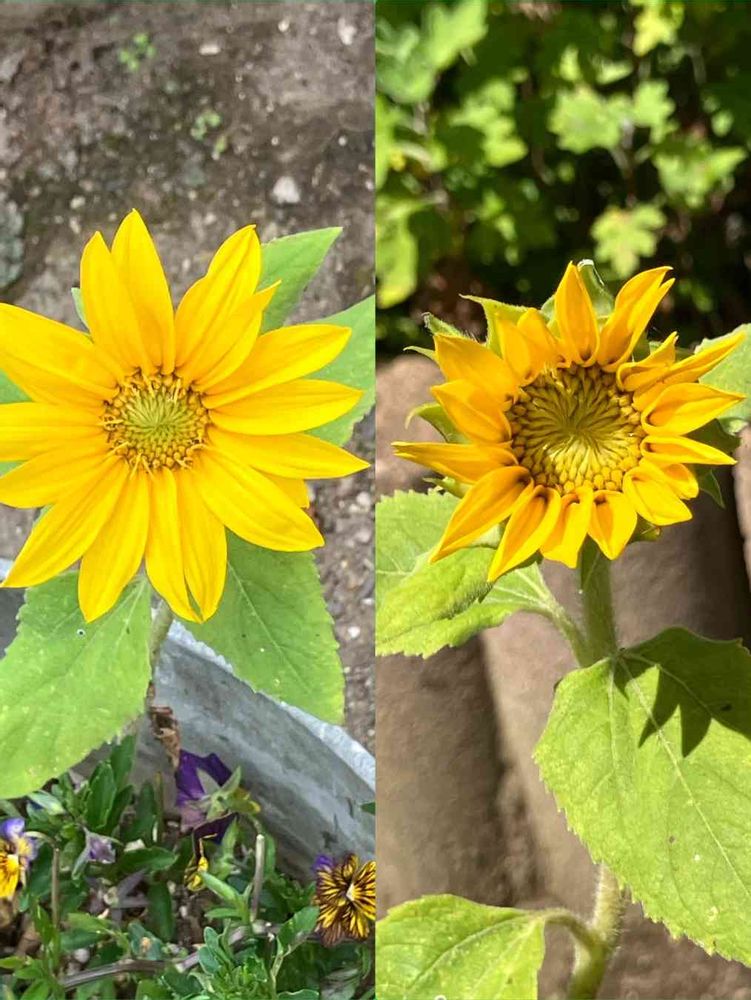 ミニひまわり🌻去年の種を蒔いたら沢山発芽したので、,あちこちに植えたら,急に,皆んな開花し始めました😉今日なんて、夏みたいな陽気でしたものね🤗