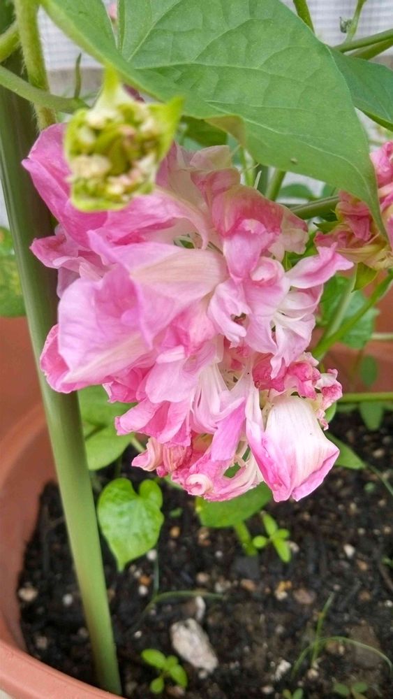 八重咲きの朝顔がそもそも有ることも知らなくて、花友さんが見せてくれたお花🤍💗にびっくりしてしまいました😅