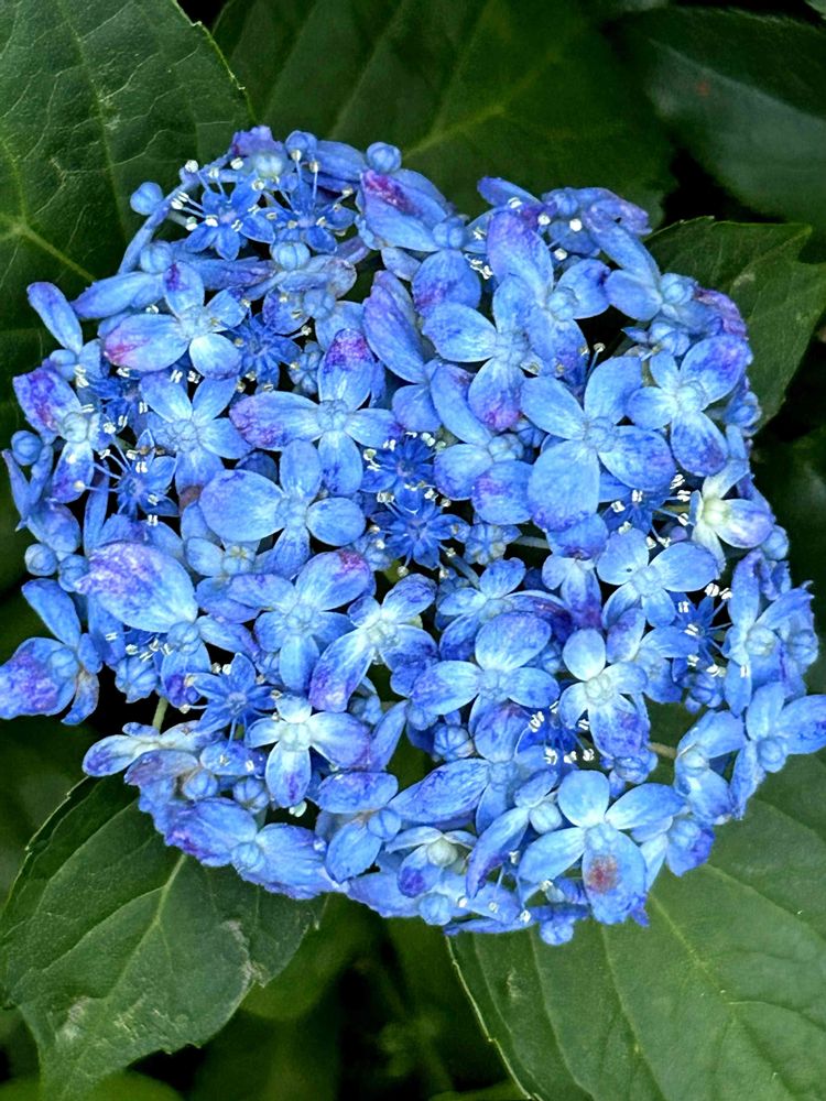 このアジサイは萼も小さく、花全体も小ぶりなのですが、色も好きですし、シベがまつ毛のように目立つのが可愛いです💙🌿
