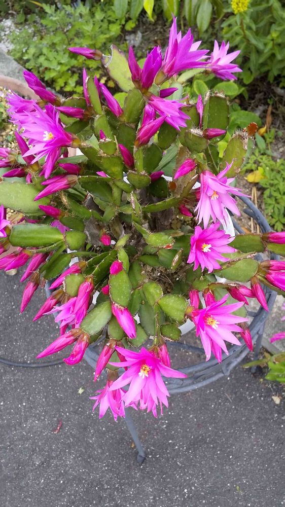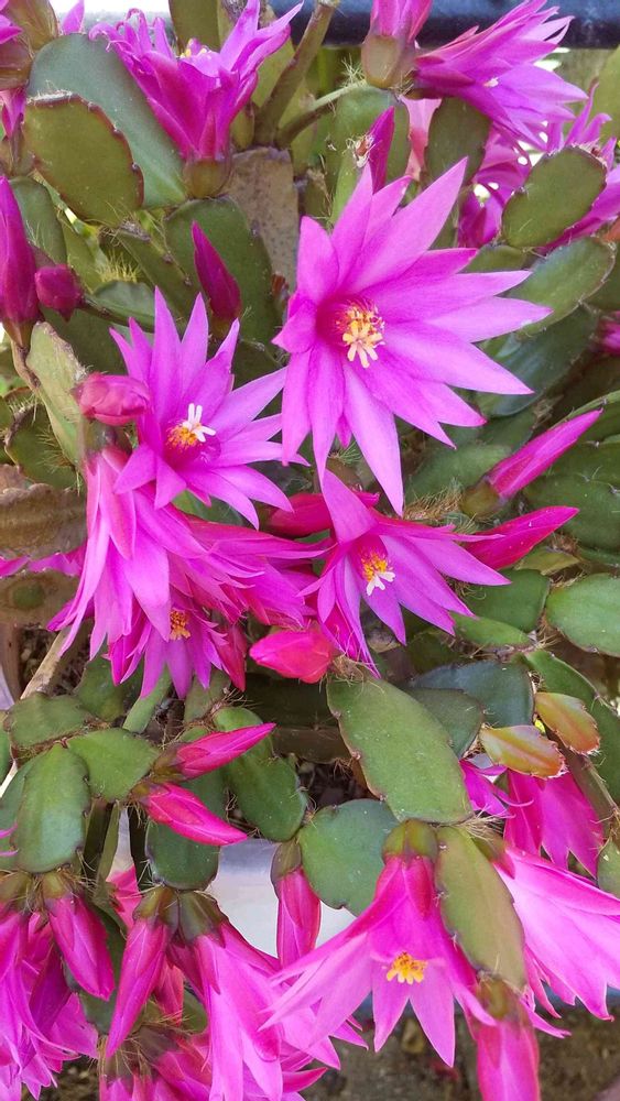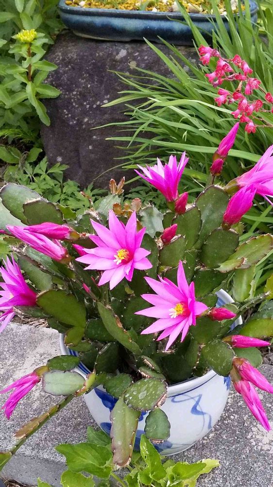 この時期に咲くカニバサボテンは、初夏の光を浴びてここぞとばかり咲き誇っています。