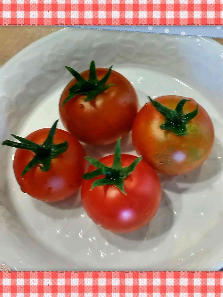 1️⃣トマト🍅🍅🍅🍅4個の割れる前に収穫しました😃😄😁💕💕 美味しかったです😋😋😋