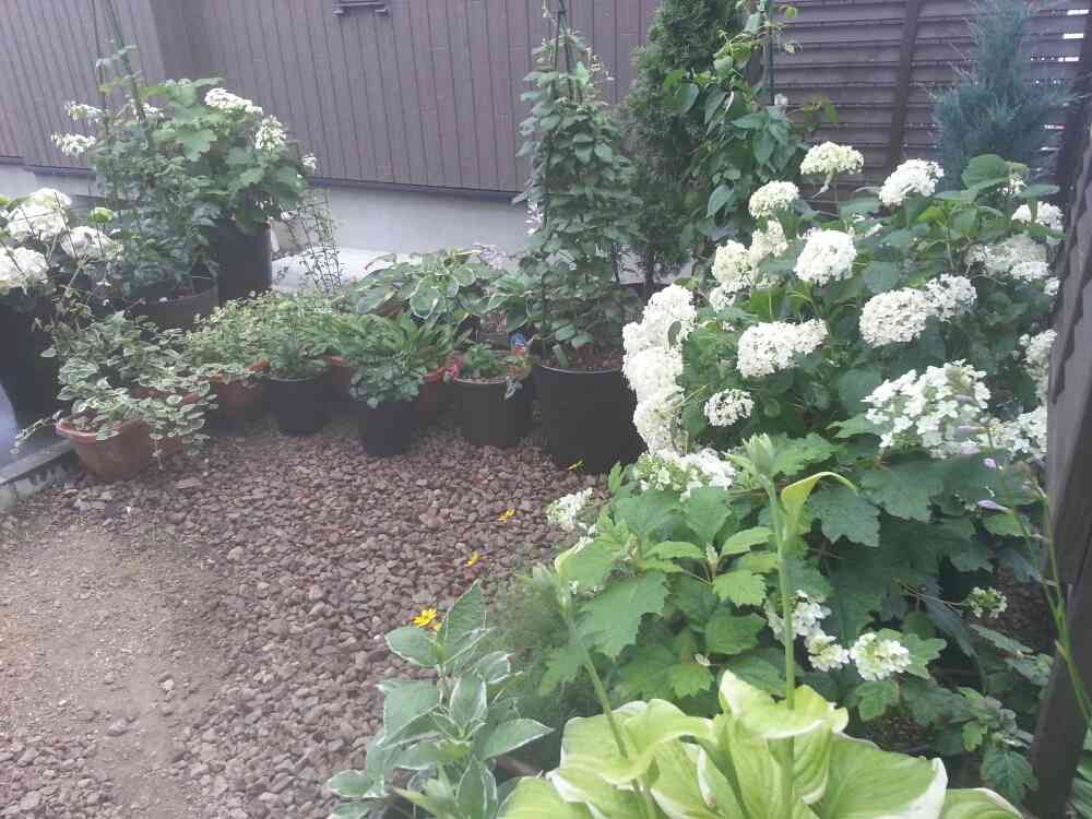 現在のガーデニングスペースです。家の周りの至るところに花はあるのですがメインのところが今はアジサイくらいしか咲いてませんね。
