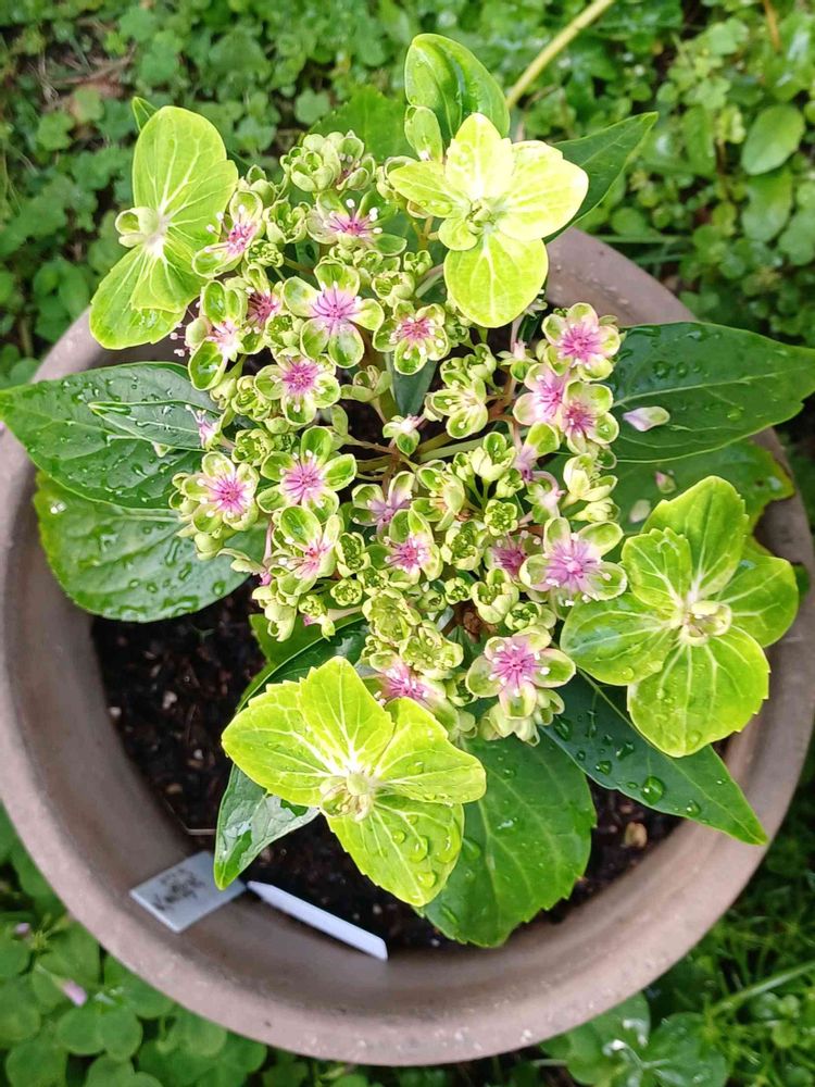 今年初めて咲いた大島緑花、内側の小花?が青というより赤み帯びてます、個性的でキレイ🥰