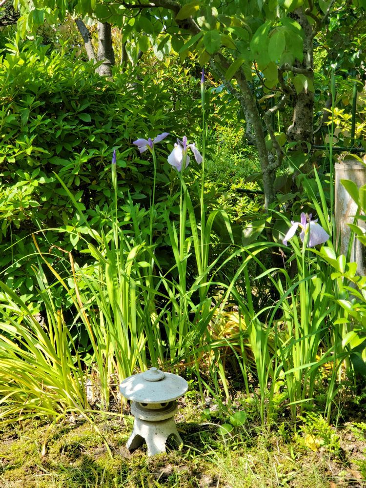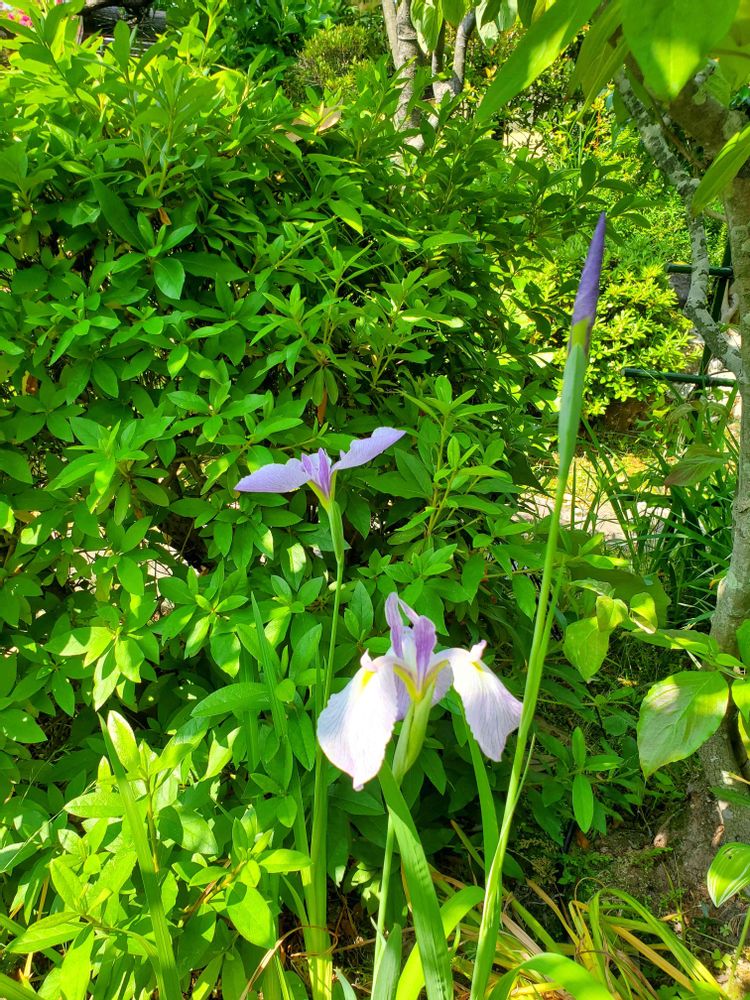 二年前イヌマキの下に置かれた鉢入りの株を掘り上げて植え直した方も、一本だけでしたが、今年はどちらもたくさん花芽が上がりお互いにその美しさを、ほめ合っていることでしょう💜