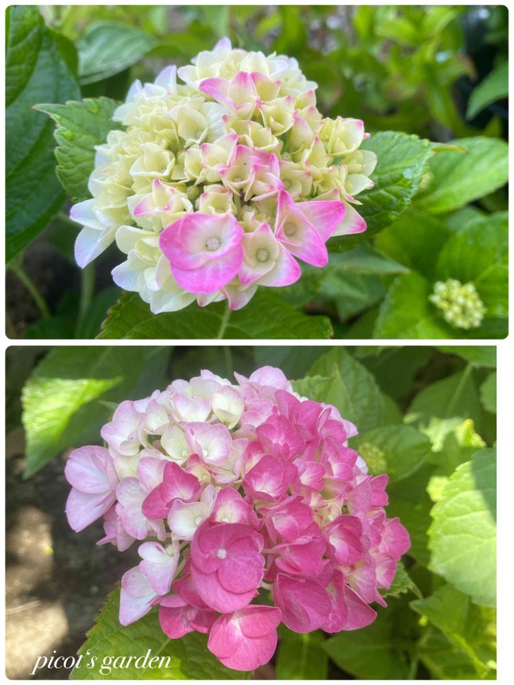 こんな風に二色咲きの紫陽花は珍しいかもしれませんね😊