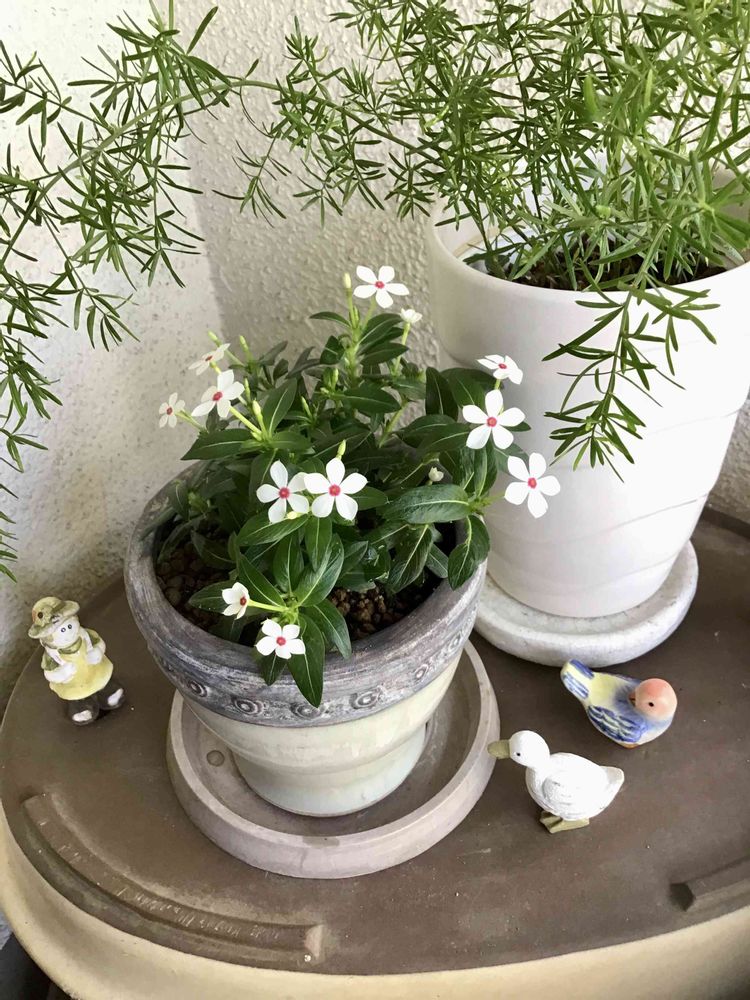 小さな庭,ニチニチソウ,アスパラガス・スプレンゲリーの投稿画像