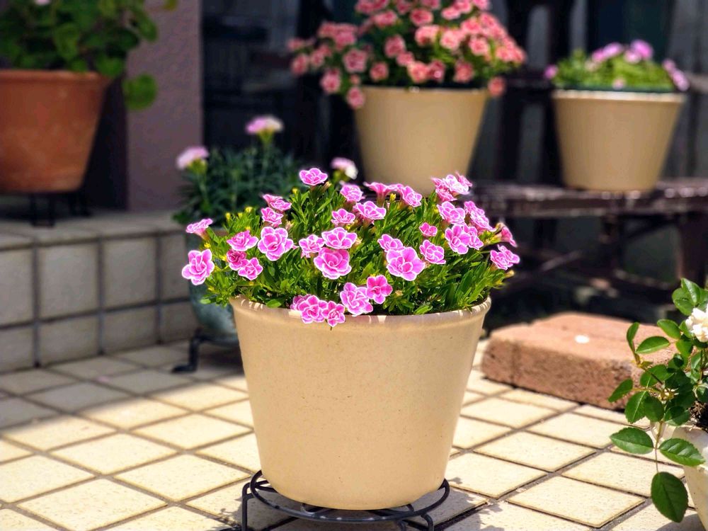 こんもりにはまだまだですが、可憐さに辛抱出来ずピンチを途中で止め花を咲かせ楽しんでいます😁