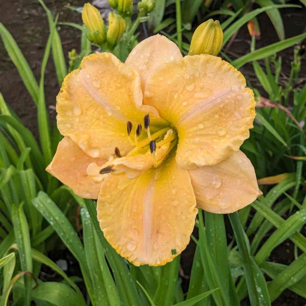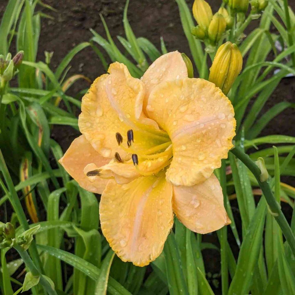 大輪のヘメロカリスです!本来は八重咲きになりますが、昨秋に植え替えた影響かほぼ一重になってしまいました😅
