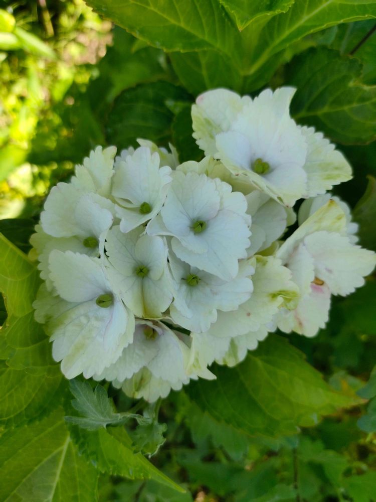 ③白い紫陽花 日陰は薄っすらピンクに🩷