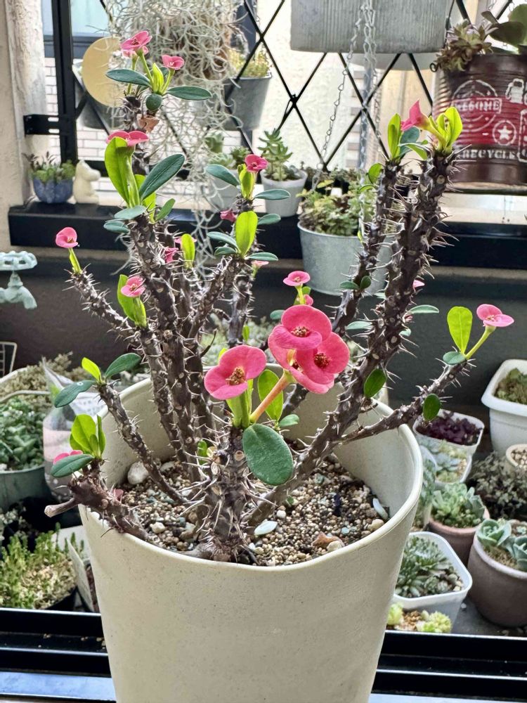 サボテンの花姿と裏腹で🌼🌸可愛いよね