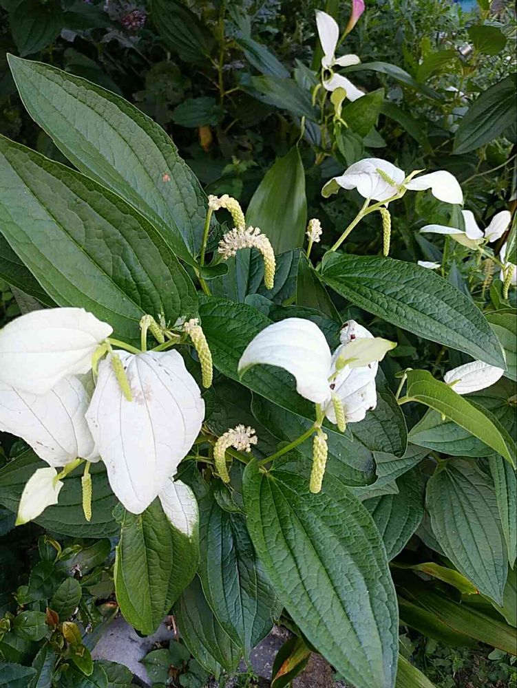 蕾のうちに、葉っぱは白くなって、花が咲いた頃には、すっかり、緑色に戻っています(?_?;ハテ?😅