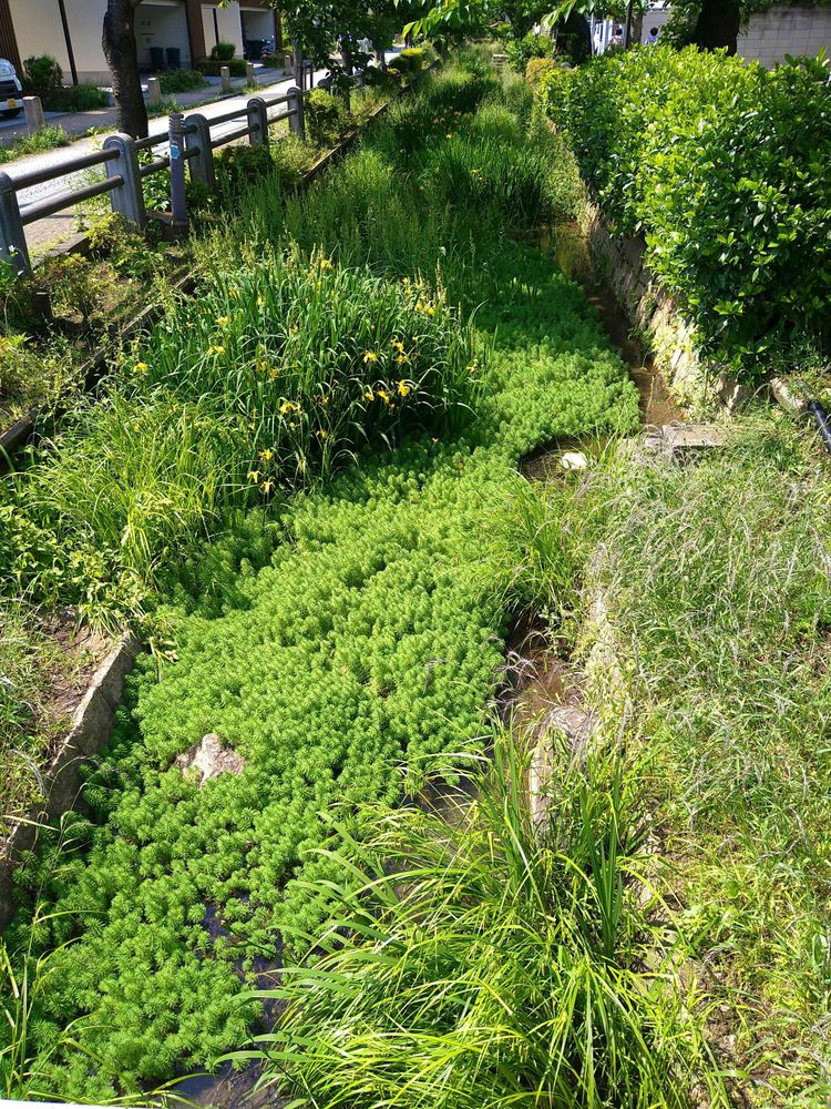 川に鬱蒼と🍀🌿🍀🌿茂る花と草たち。