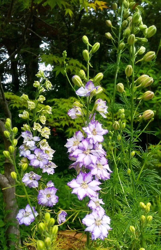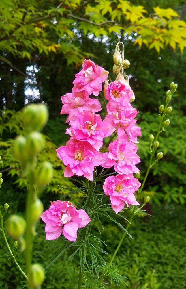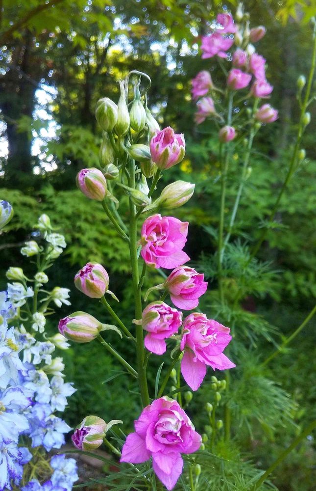 ①②③2色の千鳥草大きくなりすぎて、上の方で咲いています💜🩷🌿