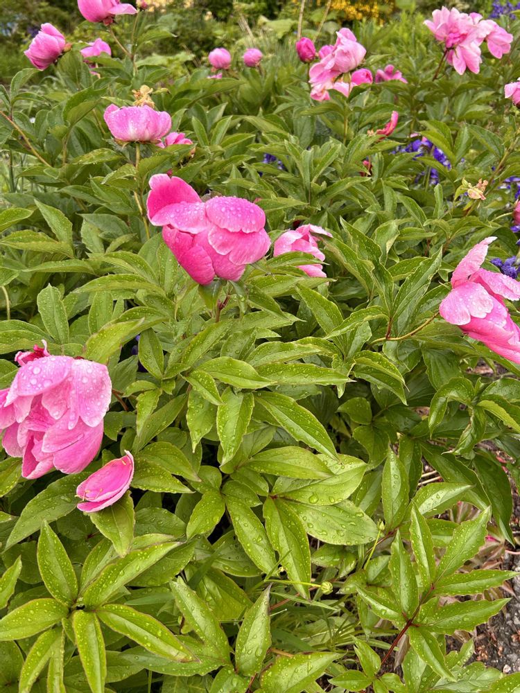 雨上がりに沢山の芍薬が凉し気で綺麗❣️