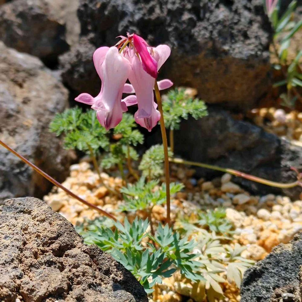 この子は園芸種の血がはいってるから、高山で見るコマクサよりも葉が大きいんです。四季咲きコマクサです