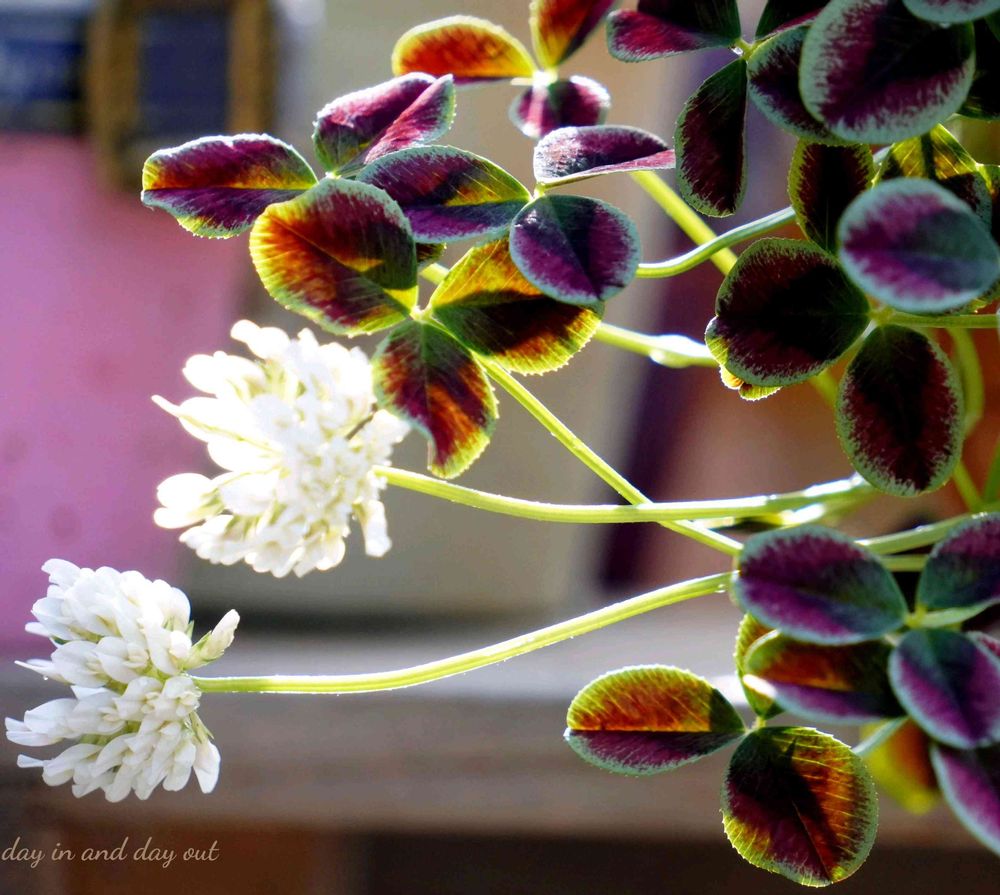 こんなに深い色のクローバーでも、お花は純白なんだね✨