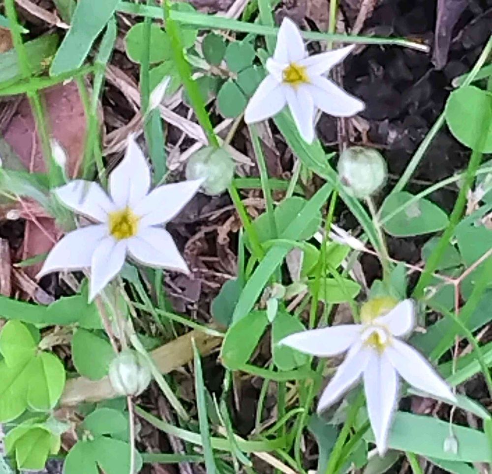 セッカニワゼキショウ、数年前に初めて見て珍しかったのに、年々咲いてる場所が増えて、とうとう今年は我がマンションの庭にも現れました!
