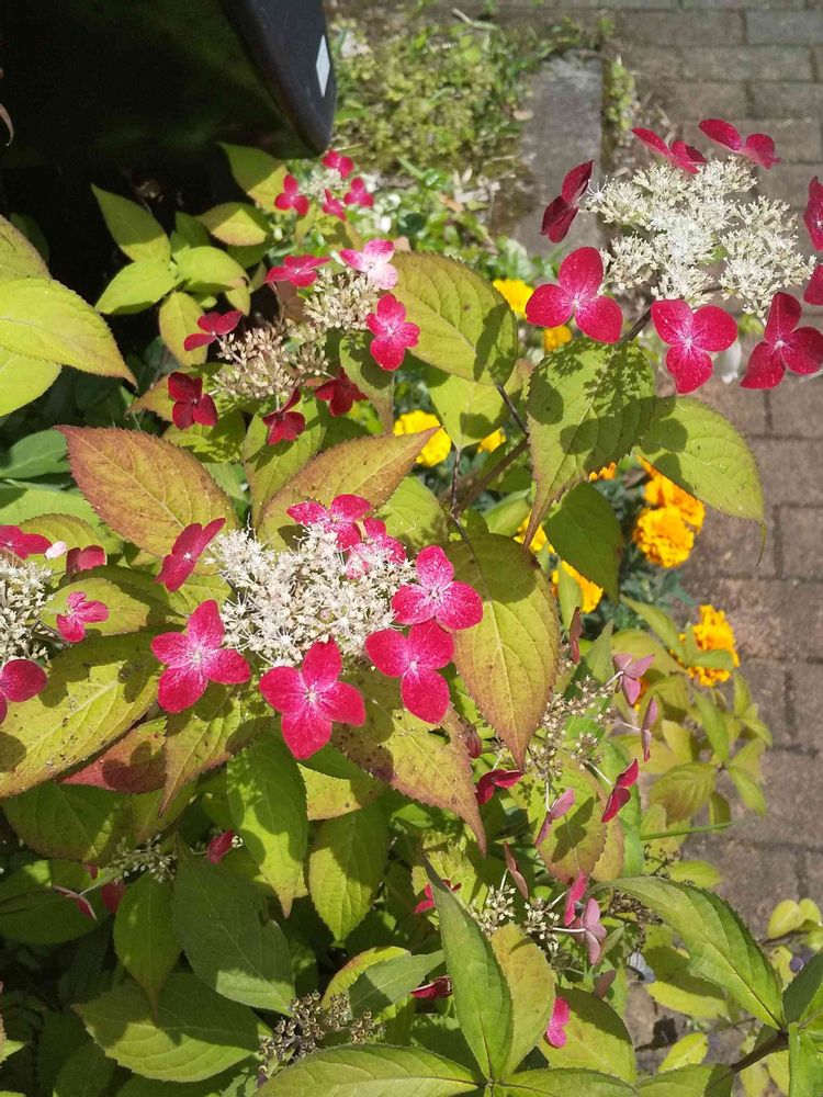 ヤマアジサイ`紅´の花色が濃い紅色になりました。