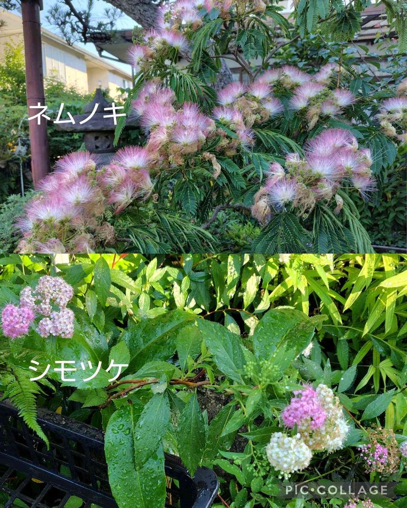 ①ねむの木とシモツケ ピンクが可愛いです