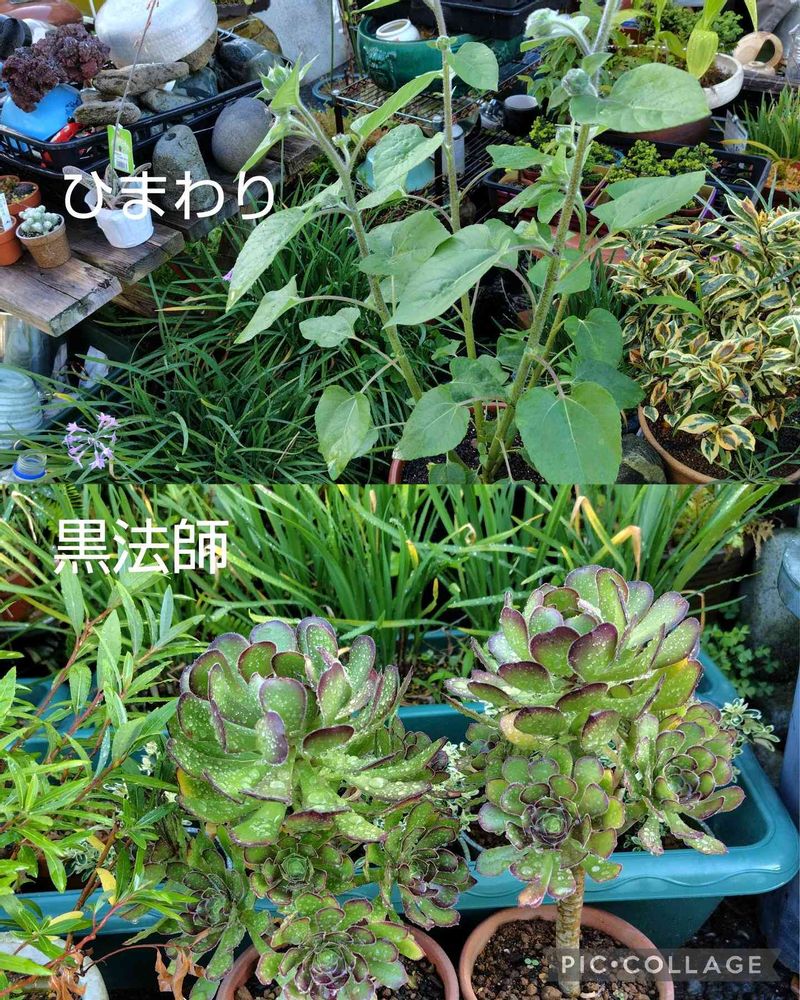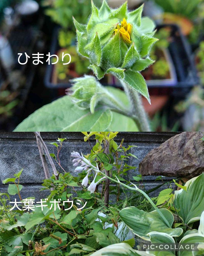 ②最近買ってきた ひまわりとつぼみを見つけて6日目の 大葉ギボウシそろそろ 花が咲きそうです