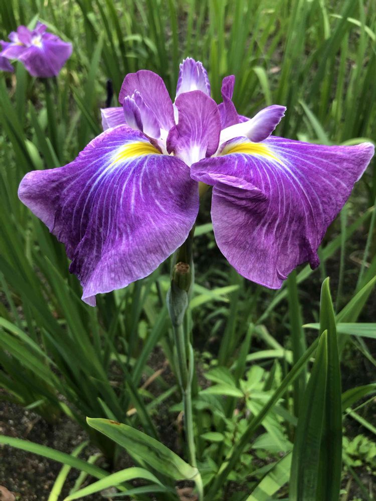 先日、万博公園の花菖蒲田にて、紫色のハナショウブ「播磨の乙女」と「五色の珠」をパチリ!📸💜🌿😊😄🌞✌️
