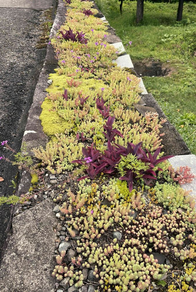 雑草避けに3年前に適当にセダムをポイポイパラパラして、そこから勝手に生き抜いてくれてます🎶