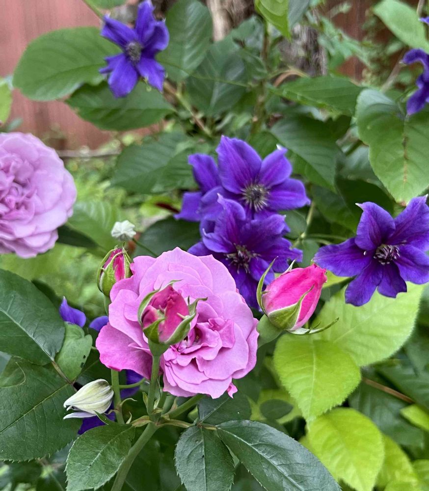 さん、コメントありがとうございます。見ていただいて嬉しいです☺️クレマチスの濃い紫が、バラのピンクを引き立ててくれました。