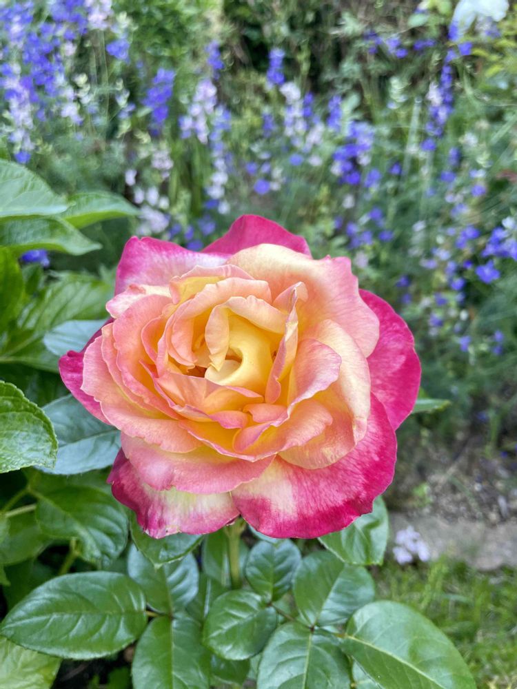 葉っぱも ツヤツヤ🌿.バックのブルーサルビアもいい感じ