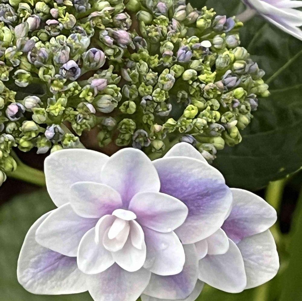 何時も、ガクアジサイの花が気になり、撮って見る👀と小さな花が、開いてました♪