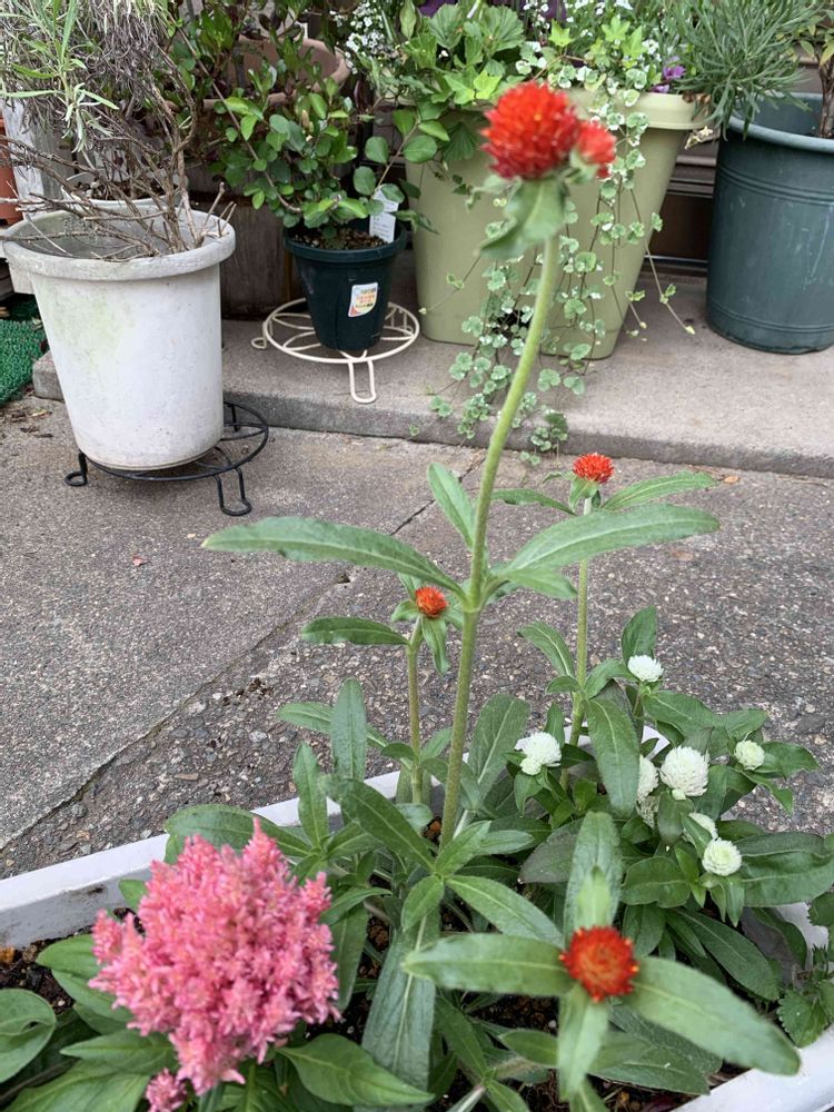 昨日、曲がってしまった千日紅が少し戻ってきました